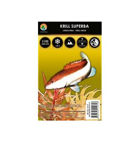 Krill är en viktig källa till föda och finns längst ned i näringskedjan. Den livnär sig på plankton och äts av fisk och havens däggdjur. Det vill säga, bland annat valarna. Det är också ett utmärkt foder för akvariefisk och innehåller naturliga färgämnen och Omega-3 fettsyra. Förpackningen innehåller lagom stora frysta bitar av krill och vatten. Tryck ut ett antal som fiskarna äter upp på några minuter